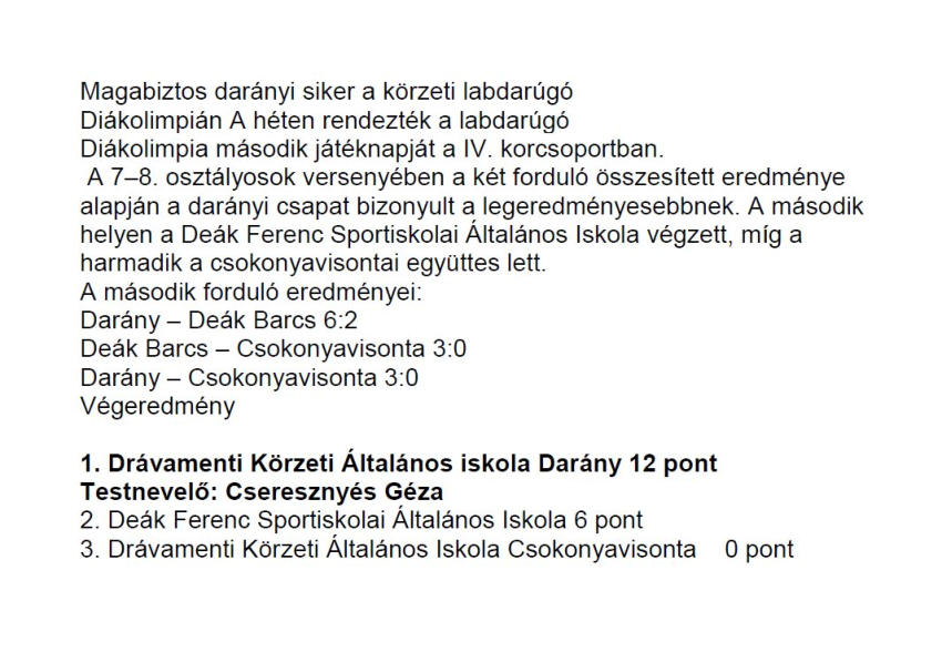 Diákolimpia labdarúgás körzeti döntő 7-8.osztály Barcs - 2026.március