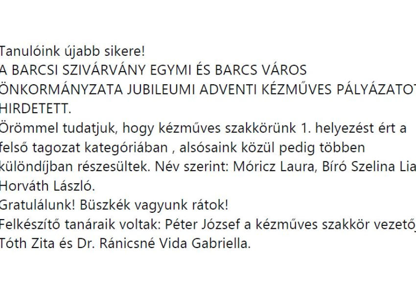 Kézműves szakköröseink sikerei - 2025.december